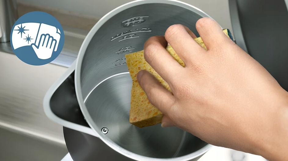 Czajnik ma wewnętrzny dzbanek ze stali nierdzewnej z szerokim otworem, który zaprojektowano z myślą o szybkim gotowaniu i łatwym czyszczeniu.