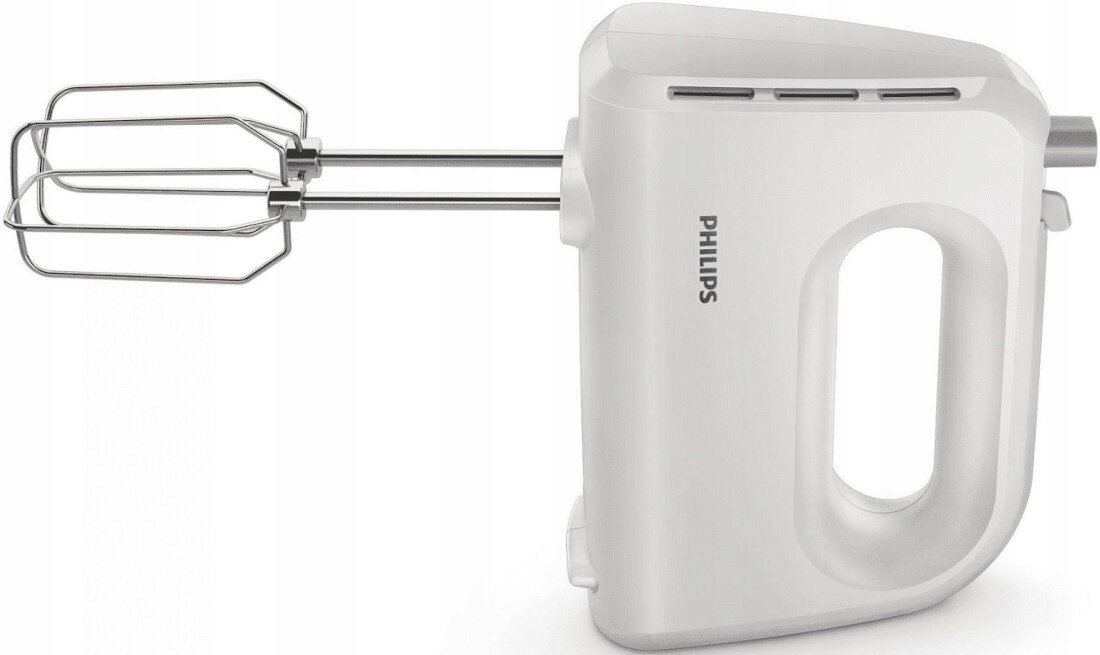 Mikser PHILIPS HR3705/00 posiada potężny silnik o mocy 300 W, który pozwala idealnie ubijać pianę i wyrabiać ciasto.