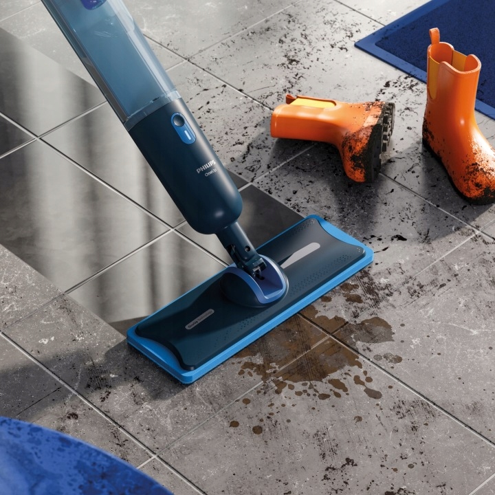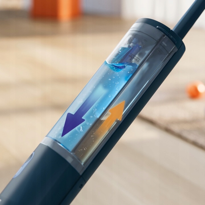 Zapomnij o myciu podłogi brudną wodą z wiadra. Philips OneUp posiada dwa zintegrowane, oddzielne zbiorniki. Dzięki temu na mytą powierzchnię trafia zawsze tylko świeża woda, a brud jest bezpiecznie odizolowany i łatwy do usunięcia.