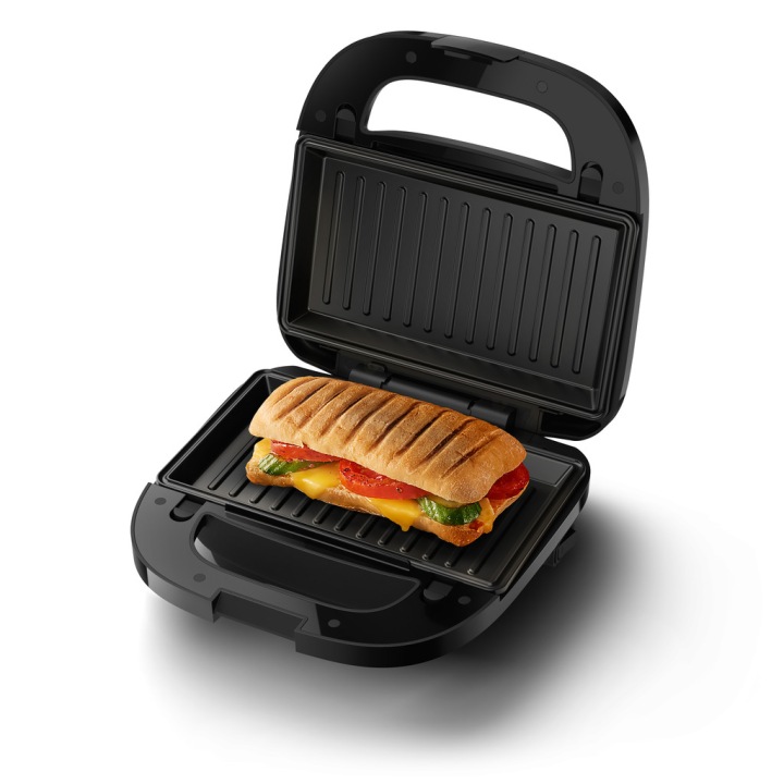 W tym opiekaczu o mocy 750 W szybko przyrządzisz idealnie zarumienione kanapki i panini.