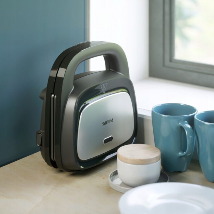 Rób perfekcyjne kanapki za każdym razem dzięki opiekaczowi, który łatwo się otwiera i zamyka.
