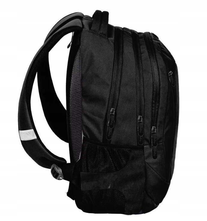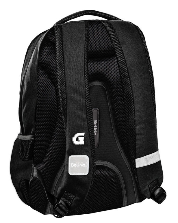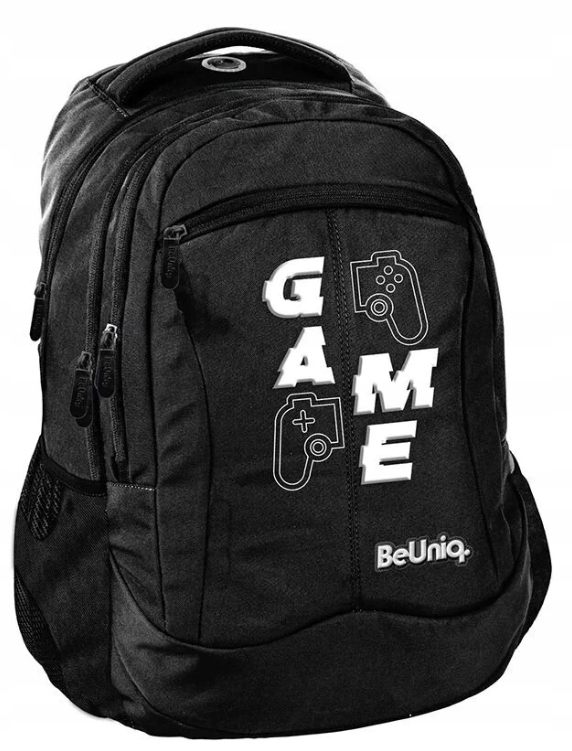 Plecak młodzieżowy GAME marki BeUniq został starannie zaprojektowany i wyposażony w trzy pojemne komory, a także przednią kieszeń z organizerem, zamykaną na zamek błyskawiczny. Plecak dysponuje dwiema bocznymi kieszeniami wykonanymi z siatki i materiału, dedykowanymi do przenoszenia butelek, bidonów lub termosów. Wewnątrz komory głównej znajduje się przegroda przeznaczona na laptopa, natomiast w drugiej komorze umieszczono organizer z kieszenią zamykaną na zamek oraz uchwyt na klucze. Wzmocnione, profilowane plecy oraz miękkie, regulowane szelki zapewniają wyjątkowy komfort noszenia. Plecak wykonany jest z materiału odpornego na przemakanie, co sprawia, że model ten doskonale sprawdza się w różnych warunkach atmosferycznych. Dodatkowo, plecak został wyposażony w wygodny uchwyt do przenoszenia, uszko umożliwiające zawieszenie oraz elementy odblaskowe zwiększające bezpieczeństwo użytkownika na drodze oraz po zmroku.