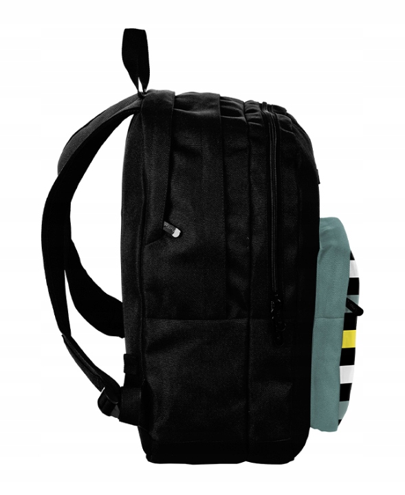 Plecak młodzieżowy Skate BeUniq to produkt charakteryzujący się wysoką funkcjonalnością ciekawym fasonem. Wyposażony w trzy komory, dwie pojemne oraz trzecią wąską na plecach, wszystkie zamykane na dwusuwakowy zamek błyskawiczny z czego dwie posiadają osłonę zamka. Kieszenie umieszczone na froncie zamykane na zamek zapewnią dodatkowe miejsce na drobiazgi. Z prawej strony Zamieszczona z prawej strony kieszonka z materiału pomieści małą butelkę.