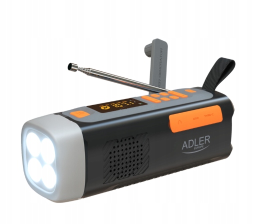 Radio FM awaryjne Adler AD1920 z panelem słonecznym 4500mAh LED SOS