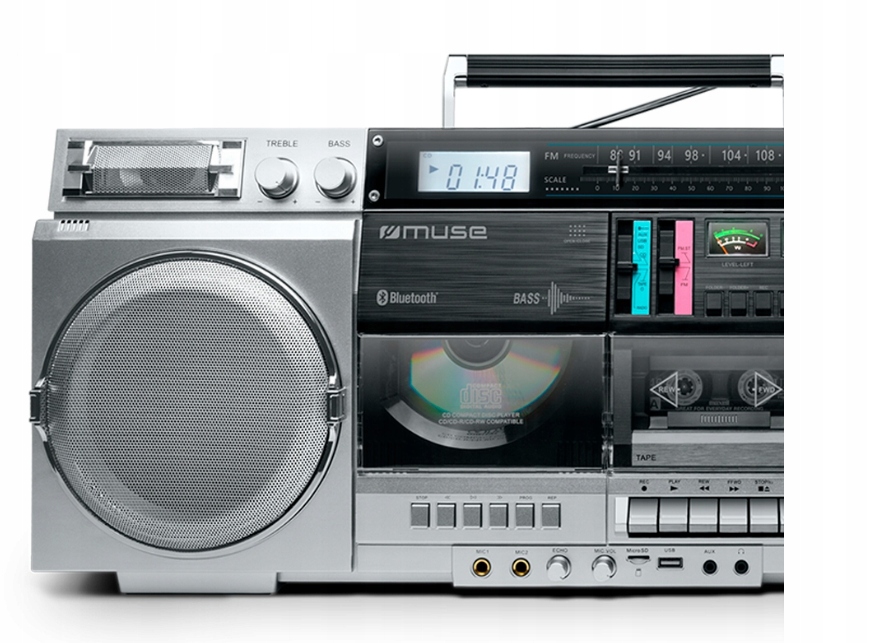 Radioodtwarzacz BOOMBOX MUSE M-380 CD AUX BLUETOOTH USB Srebrny