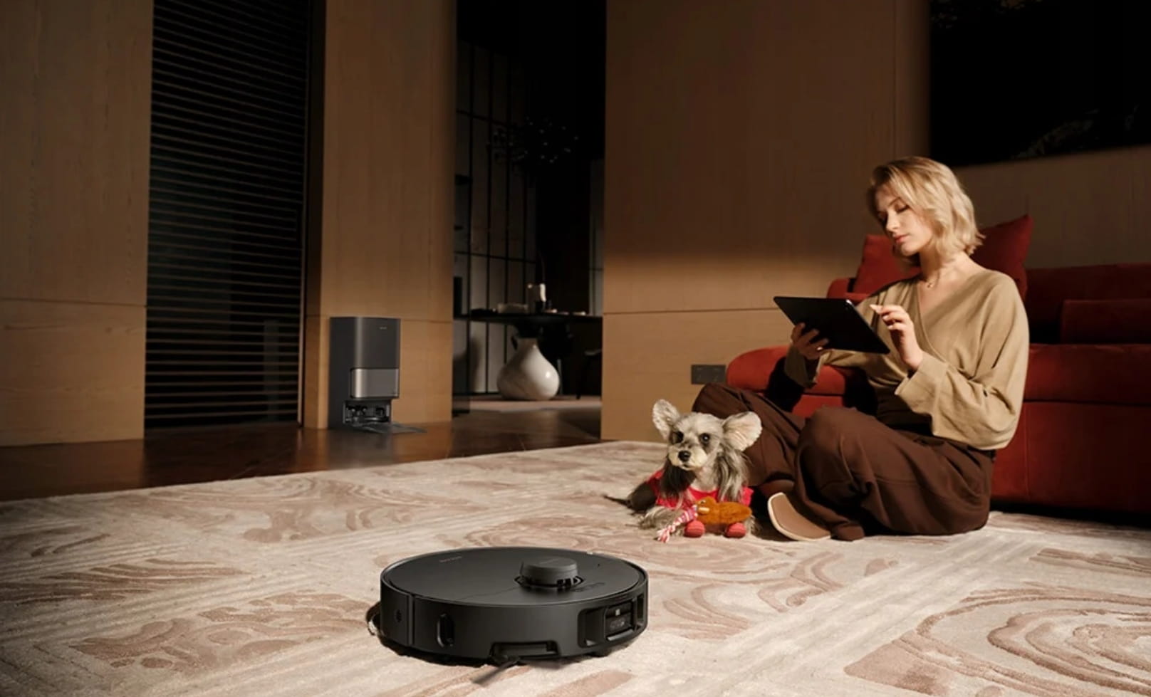 Model Dreame L40s Pro Ultra wykorzystuje sztuczną inteligencję, aby rozpoznawać obecność ludzi oraz zwierząt domowych. Robot potrafi nie tylko omijać miski, kuwety, legowiska czy zabawki, ale również reagować w czasie rzeczywistym, gdy pupil znajdzie się na jego trasie – zatrzymuje się, omija go i wraca do pominiętego obszaru, gdy będzie to możliwe. Funkcja wykrywania zwierząt i ludzi działa niezależnie od warunków oświetleniowych i nie wymaga ręcznego nadzoru. Z poziomu aplikacji możesz włączyć podgląd w czasie rzeczywistym i monitorować, gdzie aktualnie znajduje się zwierzę, a także obserwować, jak przebiega proces sprzątania.