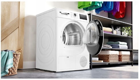 Innowacyjna technologia pompy ciepła, zastosowana w suszarkach Bosch to gwarancja delikatnego i energooszczędnego suszenia. Dzięki zastosowanym rozwiązaniom, tkaniny suszone są w niższej temperaturze w porównaniu z suszarkami konwencjonalnymi. Zastosowanie pompy ciepła umożliwiło również znaczące obniżenie poboru energii elektrycznej wykorzystywanej w procesie suszenia. W suszarkach Bosch z pompą ciepła, ubrania traktowane są wyjątkowo delikatnie, podobnie jak nasz budżet.