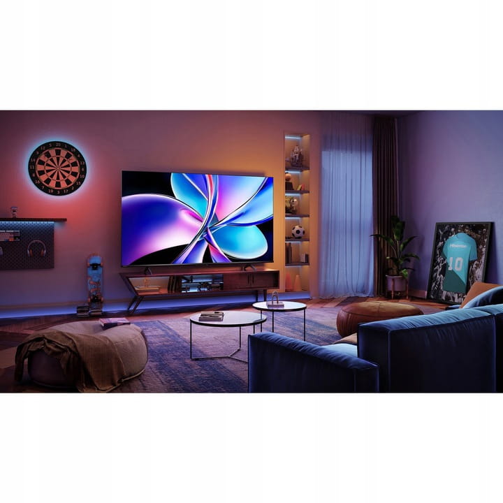 - Audio: 2 × 10 W, Dolby Atmos, DTS Virtual X, Hi-Concerto, korektor EQSmart TV: VIDAA Smart OS, Voice Control, AirPlay 2, Screen Share, DLNA