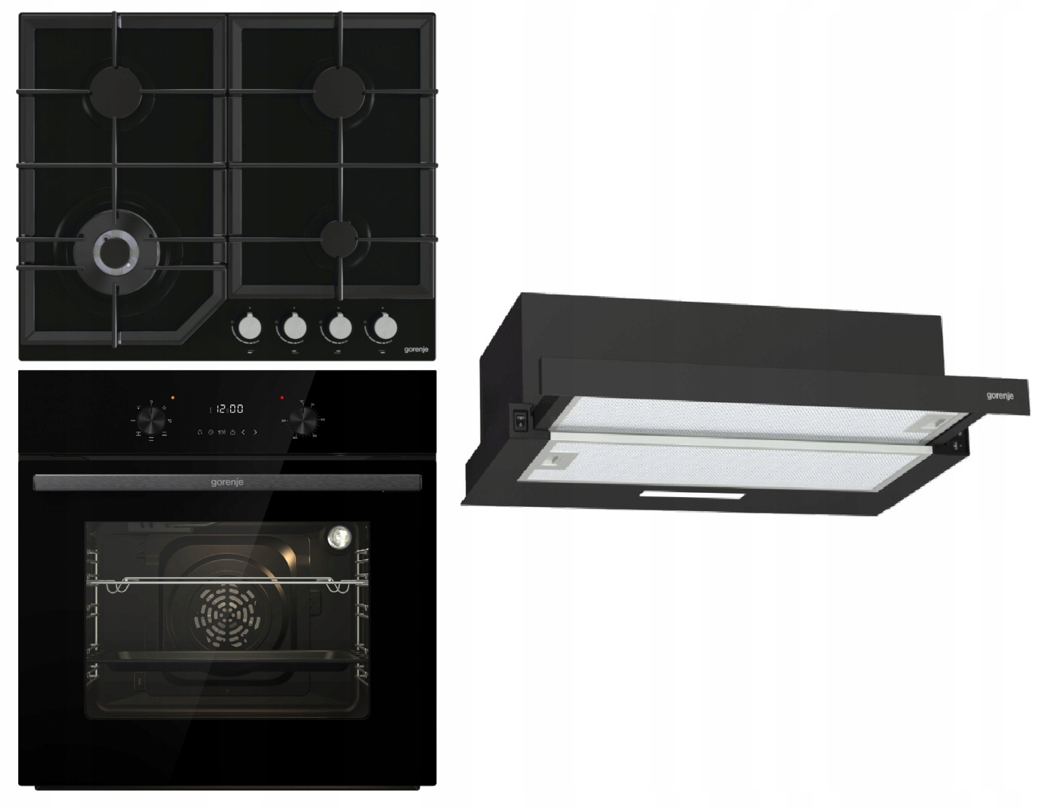 Zestaw AGD do zabudowy GORENJE Piekarnik + Płyta gazowa + Okap czarny